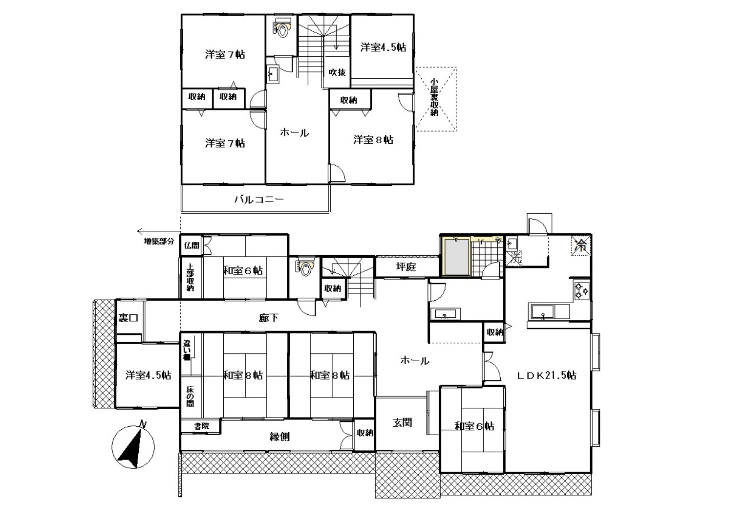 西側増築部のみ傾きが見られていて未登記になります。各所リフォーム見積も承りますのでお気軽にお申し付けください。 |