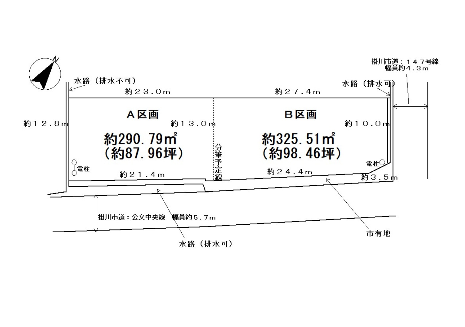 ただ、開渠水路があり占用許可を別途要します(橋桁等施工含む) |